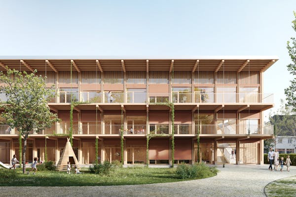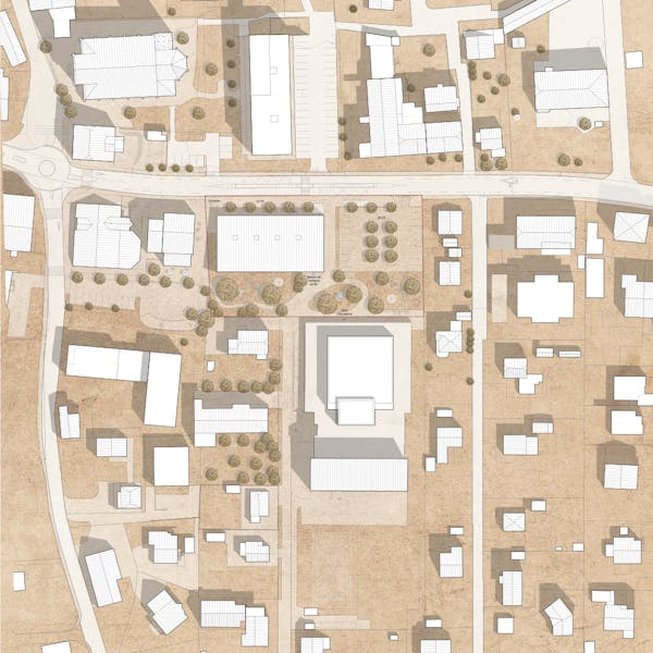 In Zusammenarbeit mit Schwab Architecte. Landschaft: Kesküla Erard architecture du paysage. Render: Onirism studio. Modell: wolczek architektur-modellbau Biel